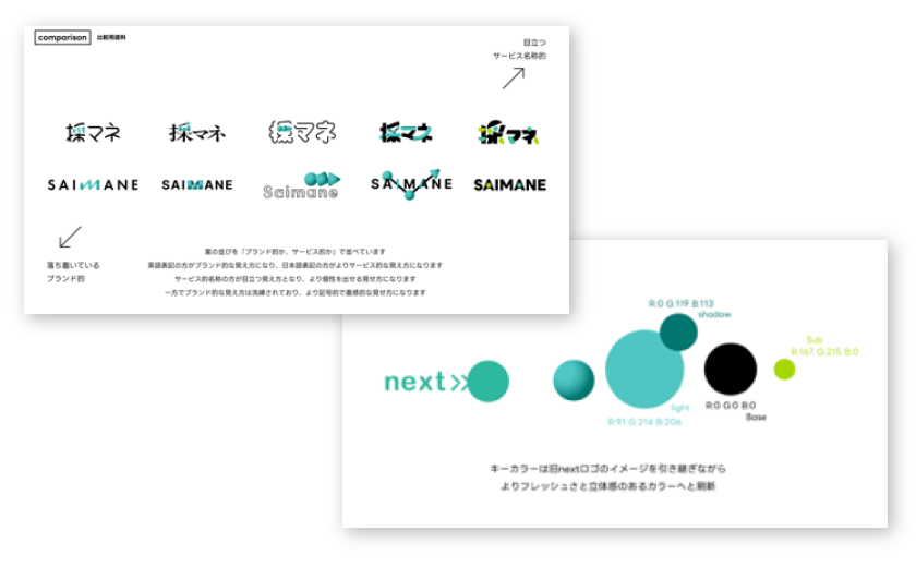 複数のロゴデザインのパターンを考え方と共に提案し、お客様と協議を重ねながらデザイン案を検証。