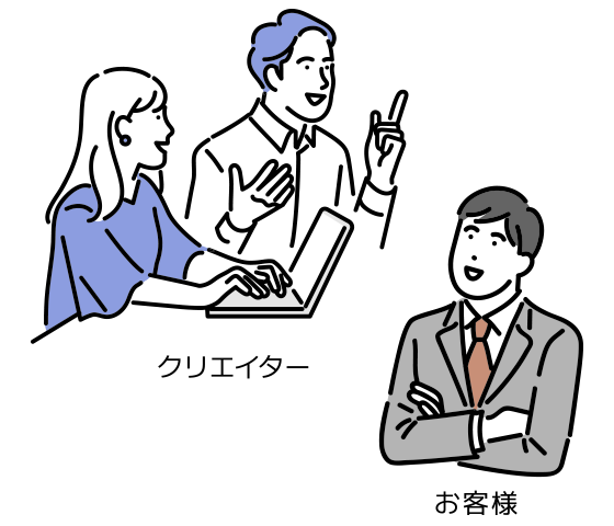 お客様のお悩みに適したクリエイターを選定し、そのお悩みを「聞く」ことからスタート。「対話」をしながら、課題の本質を発見し、その課題を解決させる「効く」プランをご提案します。